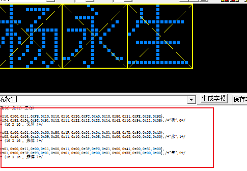 3. 输入汉字。点击生成字模或者保存字模,就会得到对应的点阵数据。