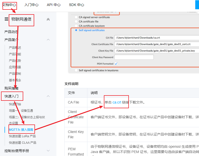 文档中心→物联网通信→快速入门→MQTT.fx接入指南