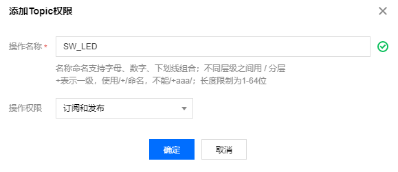 产品列表→<名字>如iot_8266→权限列表→添加Topic权限
