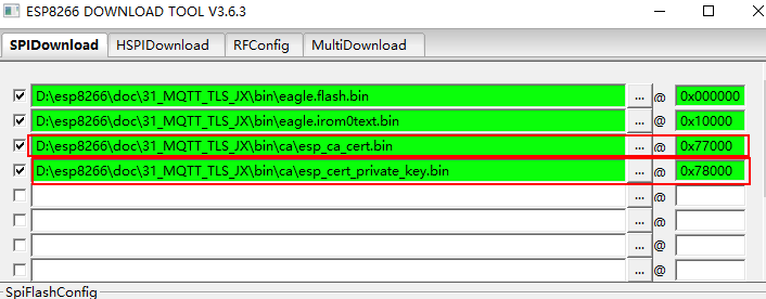 将《esp_certt_private_key.bin》烧录到【参数2: flashsector】所对应的扇区