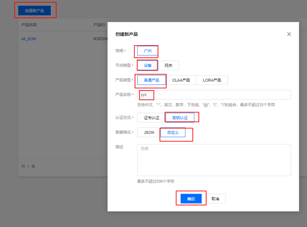 2.3 设置产品名称→点击创建