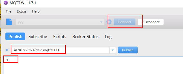 publish为客户端4I7KLY9ORJ/dev_mqtt/LED