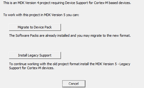 MDK Version 5 uses Software Packs to support a microcontroller device and to use middleware. To maintain backward compatibility with MDK Version 4 you may install Legacy Support. This might be necessary for two reasons: