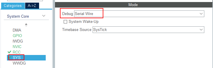 那原因是什么呢,我们转到cubeMX来看看,是不是把sys忽略了呢,下次记得要选一下调试选项哦