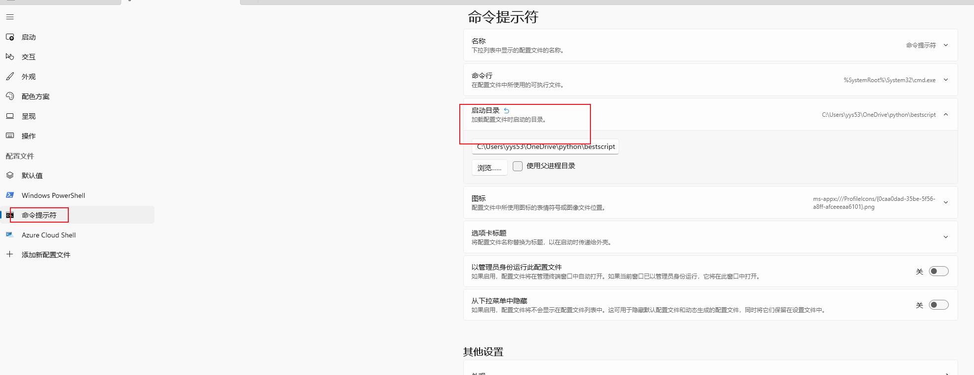 打开 cmd复制以下代码就可以就可以将cmd的默认路径改为 C:\Users\yys53\OneDrive\python\bestscript
