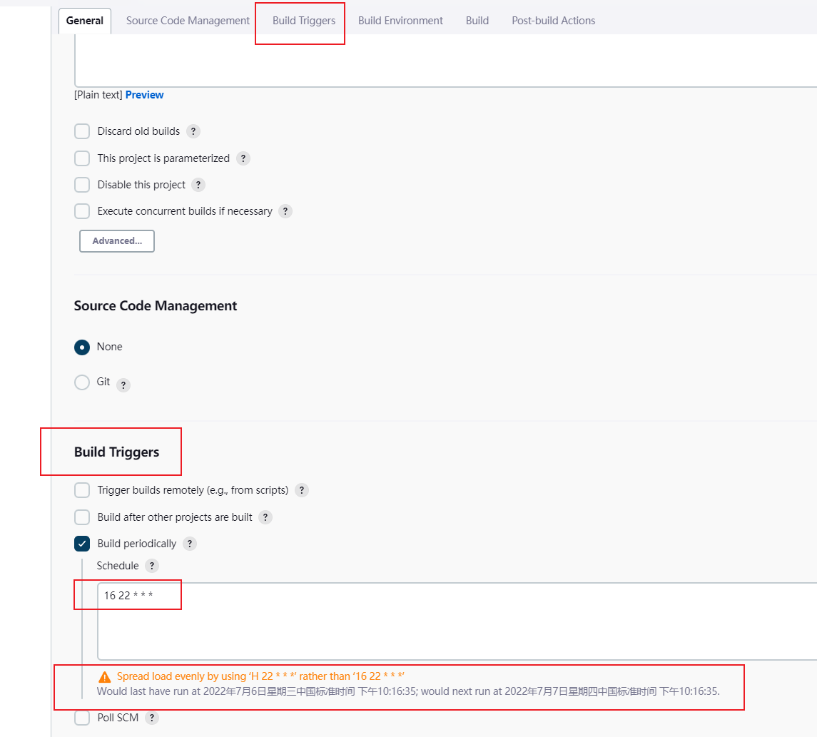 "build_periodically": ['H */4 * * *', 'H 15 * * 1-5'],