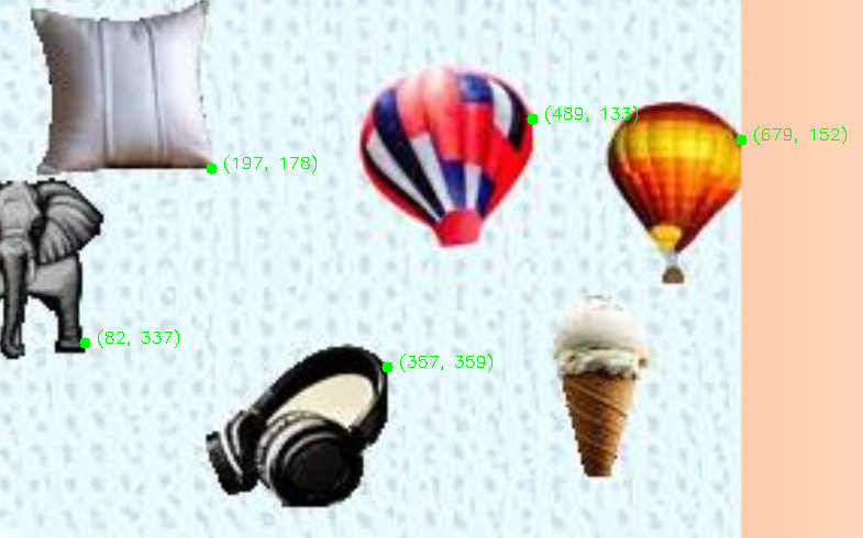 cv2.putText(img, f"{point}", (point[0] + 10, point[1]), cv2.FONT_HERSHEY_SIMPLEX, 0.5, (0, 255, 0), 1)