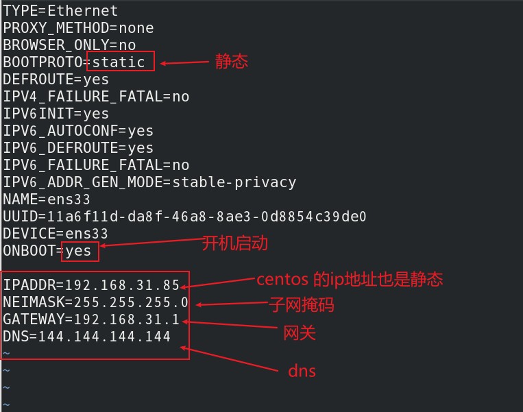 sudo vi /etc/sysconfig/network-scripts/ifcfg-ens33