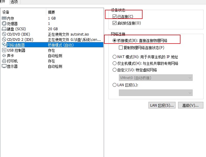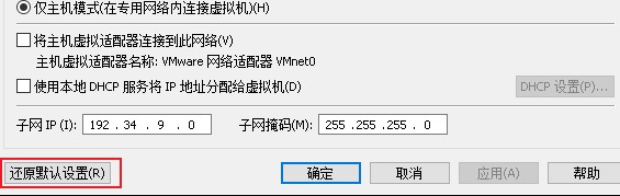 注意:如果报错VMnet0’上的网桥没有运行,点击还原设置,不报错忽略此步