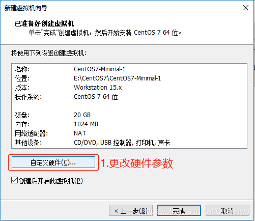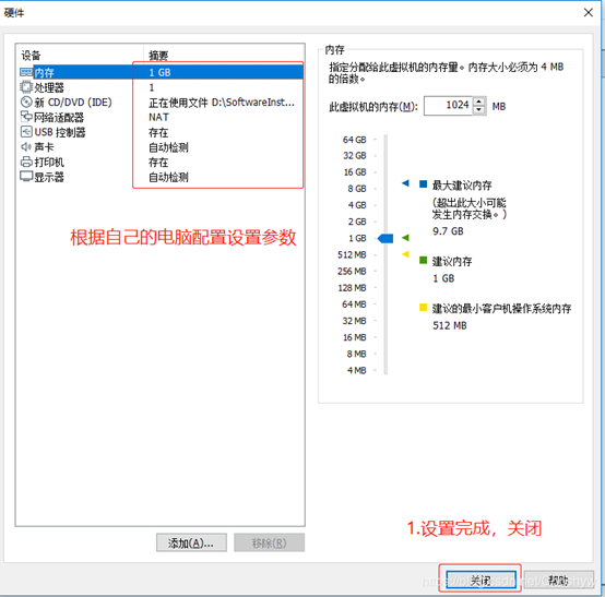 硬件参数可根据自己比较本的硬件适当调整,默认也可以,安装好后还可以修改