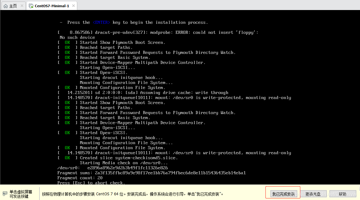 虚拟机自动加载两个CD,在设置里把CD/DVD(IDE)autoinst.iso移除
