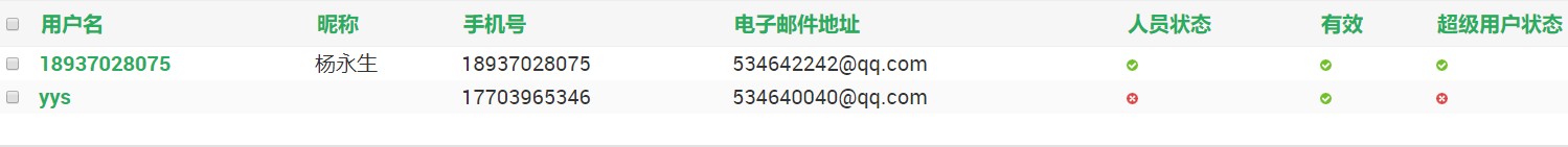 list_display = ('username', 'nickname', 'mobile', 'email', 'is_staff', 'is_active', 'is_superuser')