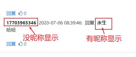 model.py判断用户是否有昵称如果有就显示昵称,没有就显示手机号,在评论回复可以看到,例如在detailhtml加入get_nickname,如下图