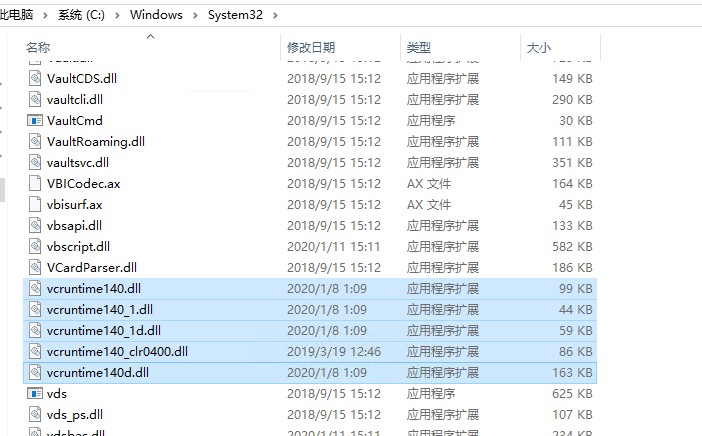 mysqld --initialize-insecure 初始化mysql 这里我的机器出现 msvcr140.dll 缺失 反正不能安装之类的话,去安装过mysql的电脑路径C:\Windows\System32复制这些开头的。
