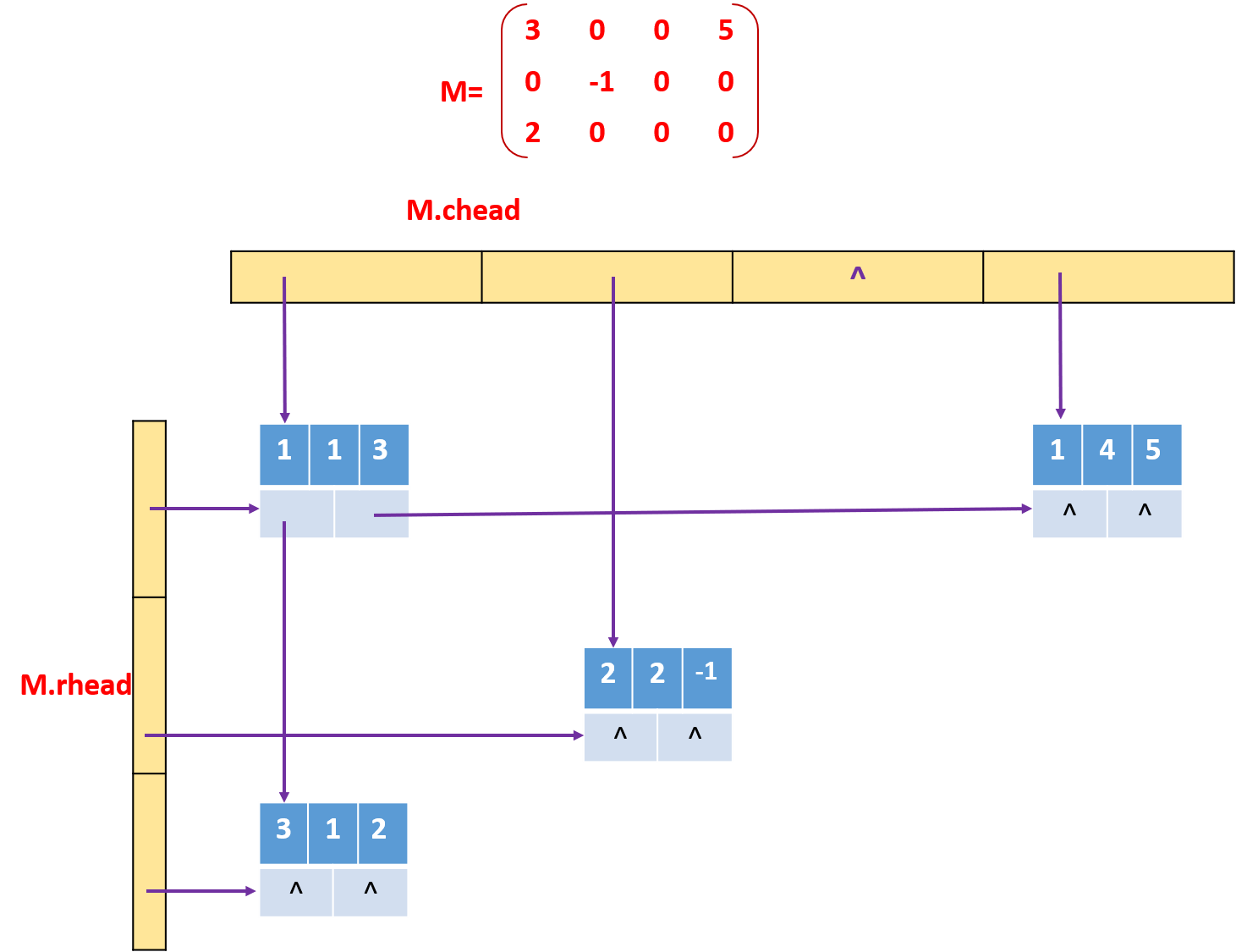 ●down:用以链接同- -列中的下一个非零元素。